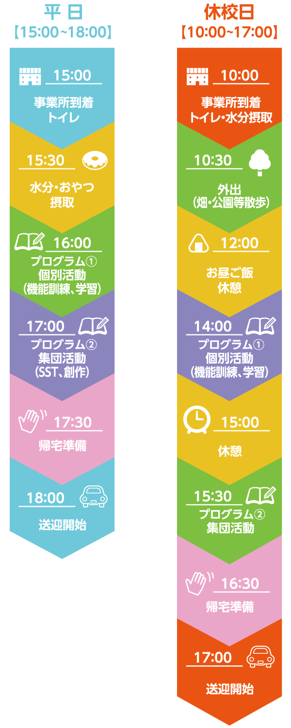 各曜日、学校がお休みの日の時間割は別紙にてお知らせいたします。